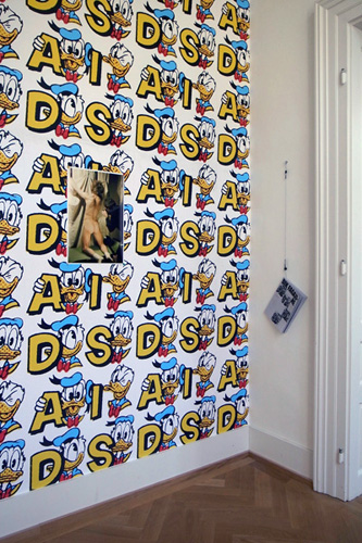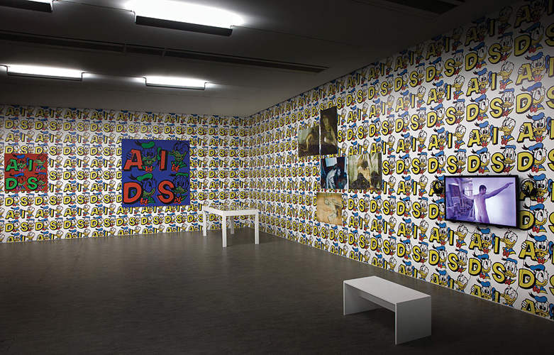 The reference to the "AIDS era" (1989-94) of General Idea (a collective formed in 1969 by AA Bronson, Felix Partz and Jorge Zontal), is the pretest to create a short circuit between their subversive practice and Radziszewski’s Kisieland project (2009 - ongoing), based on Ryszard Kisiel, a personality behind the first East-Central European gay-zine “Filo”, re-discovered by the artist. The snapshots from Kisiel’s archive, consisting of dozens of color slides, documenting photo shoots organized by Kisiel and his friends in a private apartment, are a rare testimony of the early AIDS years. These archival materials, a direct reaction to the Polish anti-gay militia campaign (“Hiacynt”) are juxtaposed to Radziszewski’s strategy of appropriation, displayed in form of multiples, prints, paintings, wallpaper, and other materials.